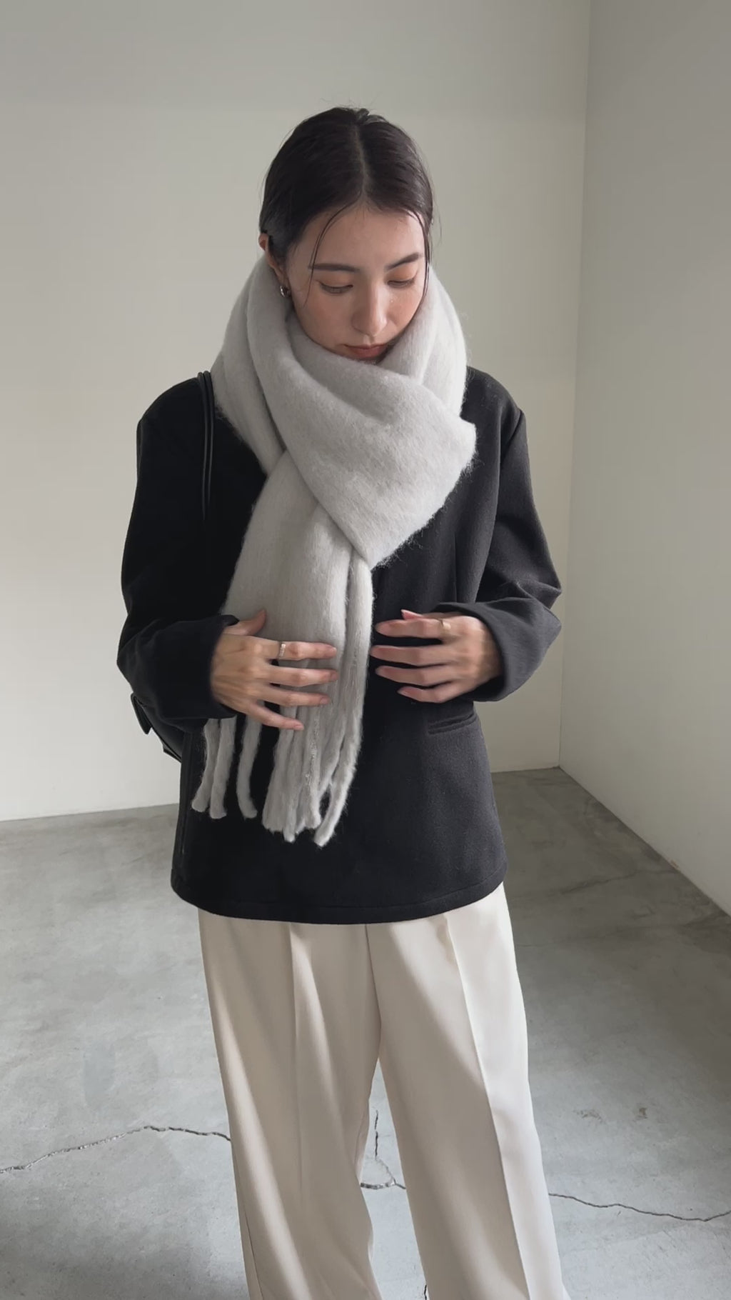 太めのフリンジデザインが目を惹くボリュームマフラー