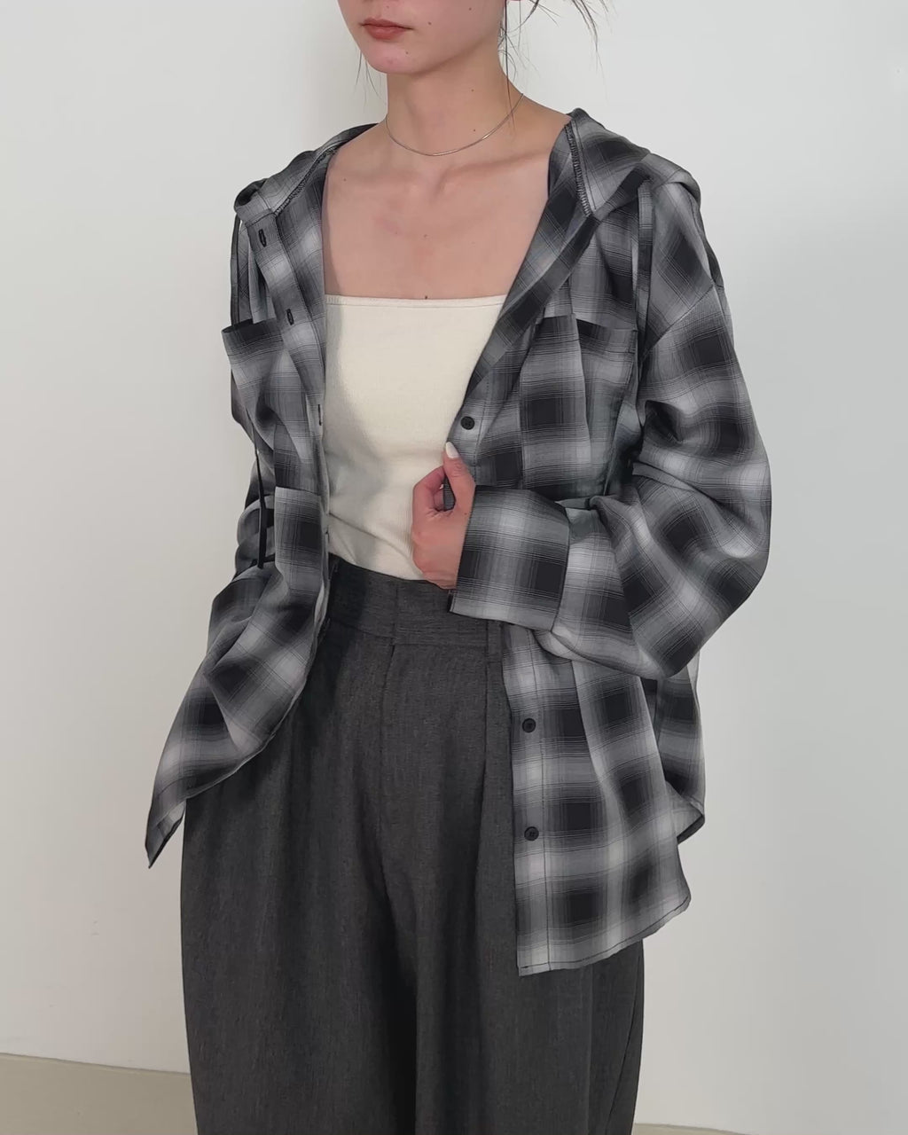 軽やかで春の装い感じる、チェックフーディーシャツ。