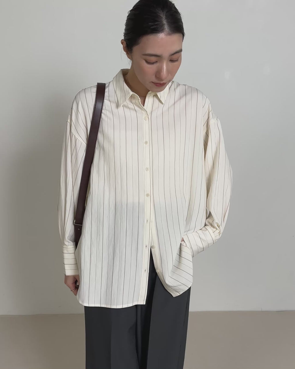 大人の抜け感を叶えるピンストライプ柄と自然な落ち感が魅力の1枚。