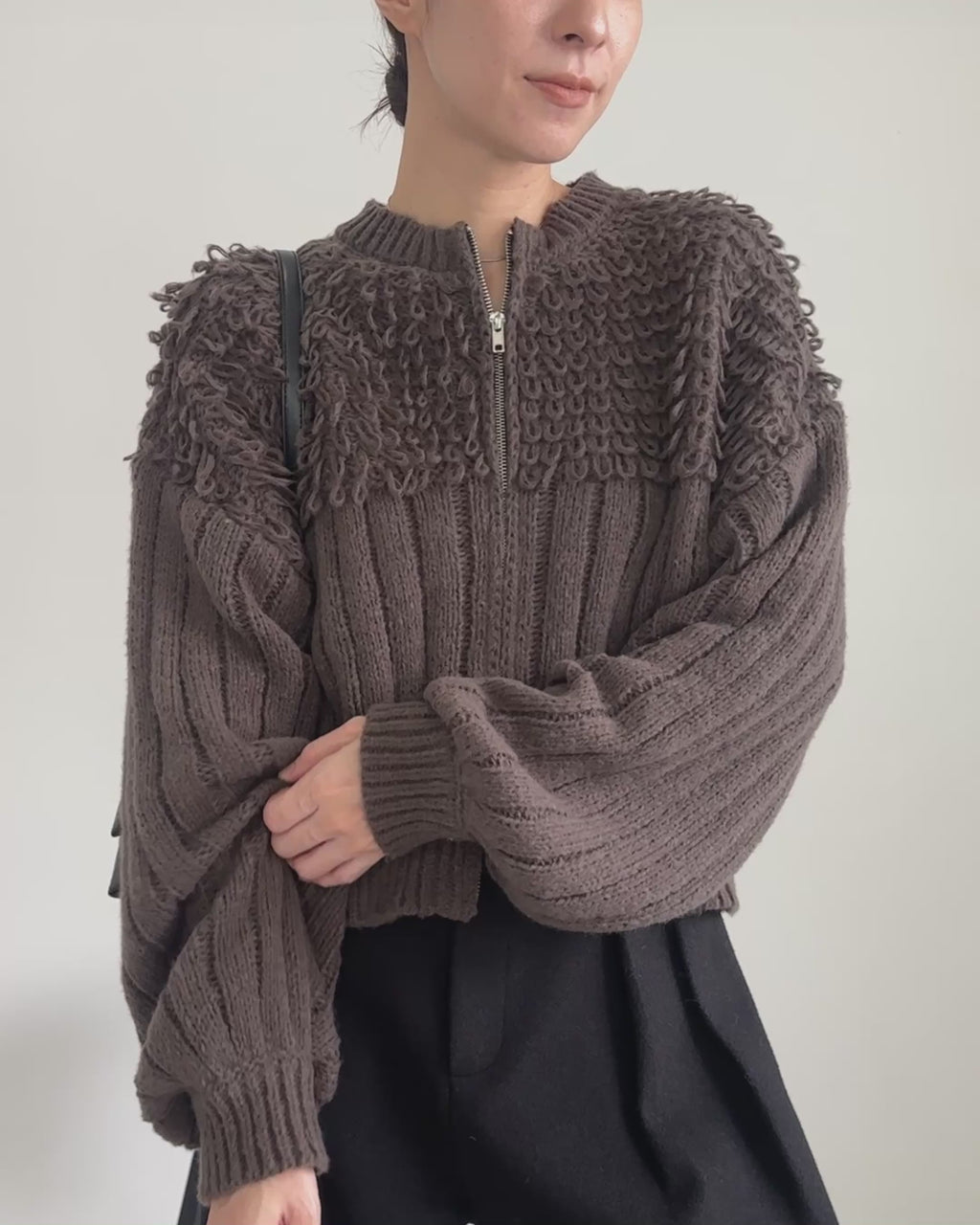 ループデザインとリブ編みが存在感を放つ旬のデザインニット。