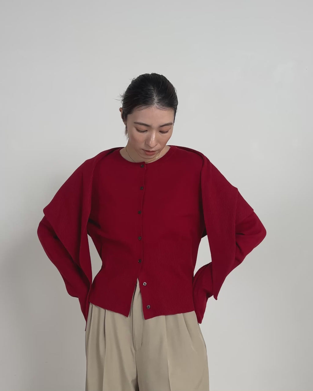カーディガンはハイゲージ編みで、肌触りがよい軽い着心地に仕上げました。