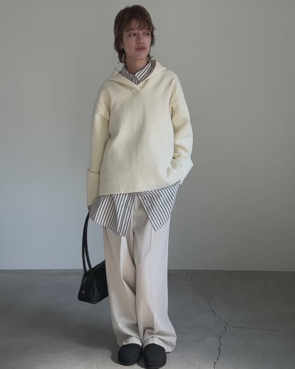 インナーにキャミソール合わせで鎖骨をのぞかせてすっきり合わせたり、