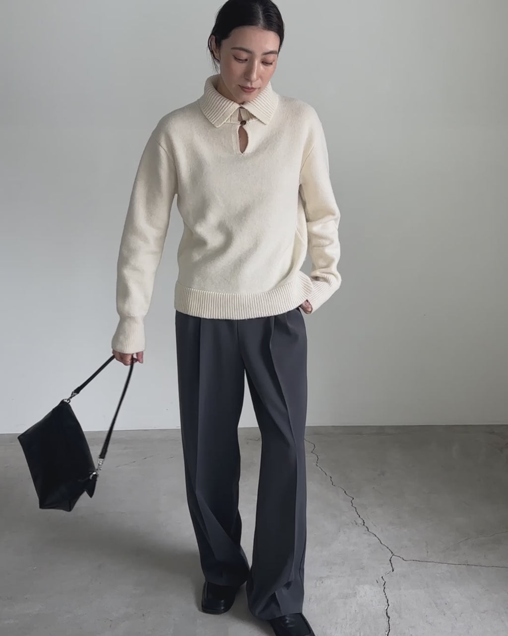 ボリュームのあるボトムス合わせもバランスよく着こなせます◎