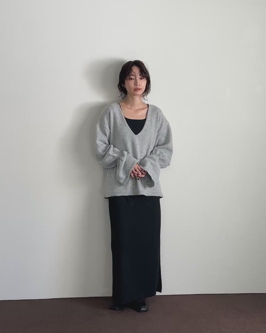 ディープVネックとベルスリーブデザインが女性らしい魅力を引き立てる1枚。