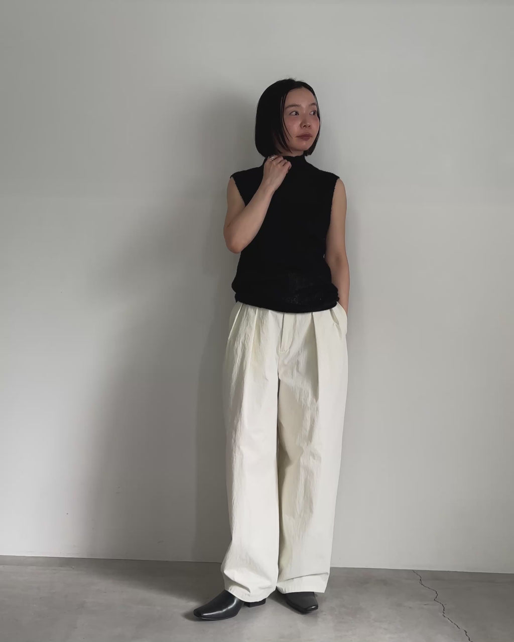 ワイドパンツやスラックスと合わせてクリーンなきれいめスタイルはもちろん、