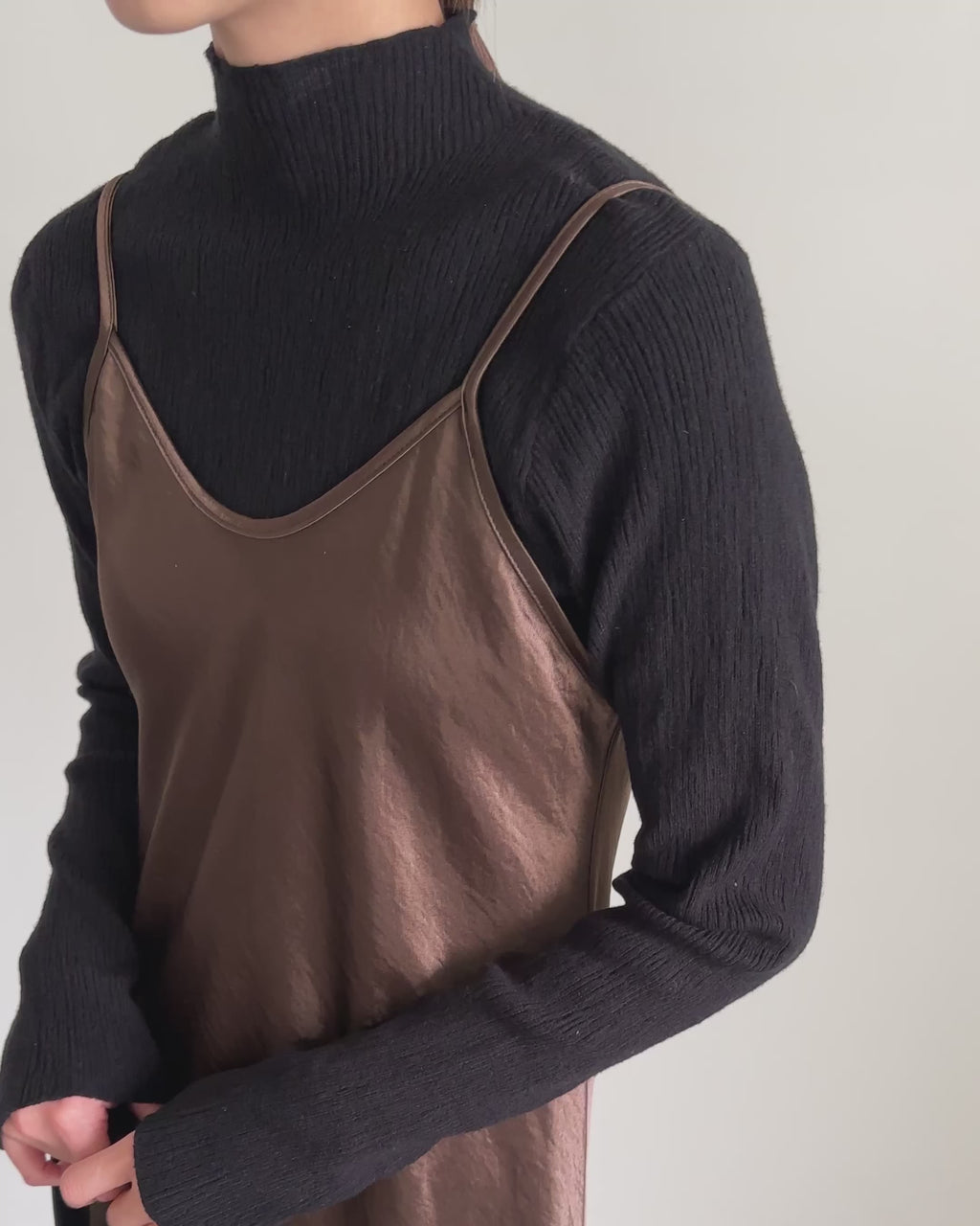 秋冬は温かみのあるニットと合わせて奥行きのあるレイヤードスタイル、