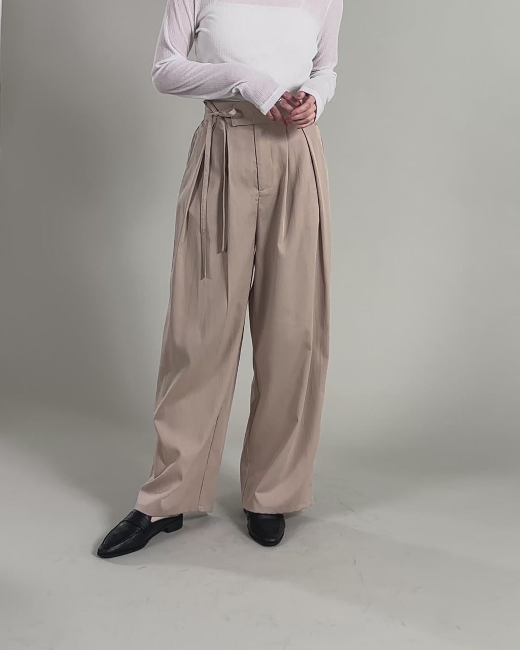 【Et】Two-Tuck Ribbon Straight Pants