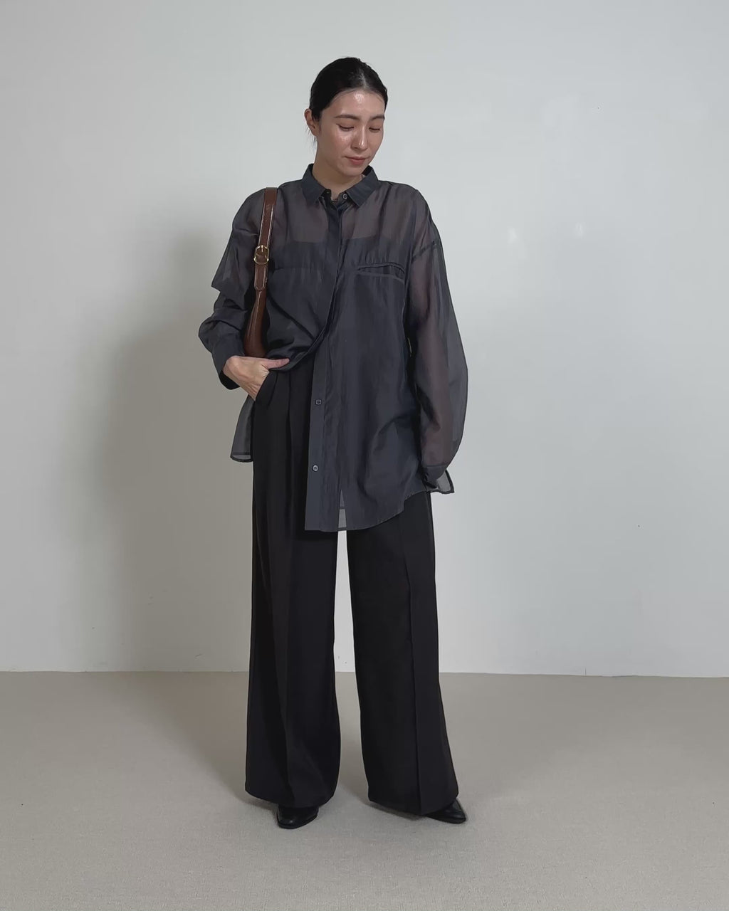 ワイドでゆとりのある分量感ながら、落ち感のある素材とセンタープレスですっきりとした印象に仕上げ、スタイルアップ効果も期待◎