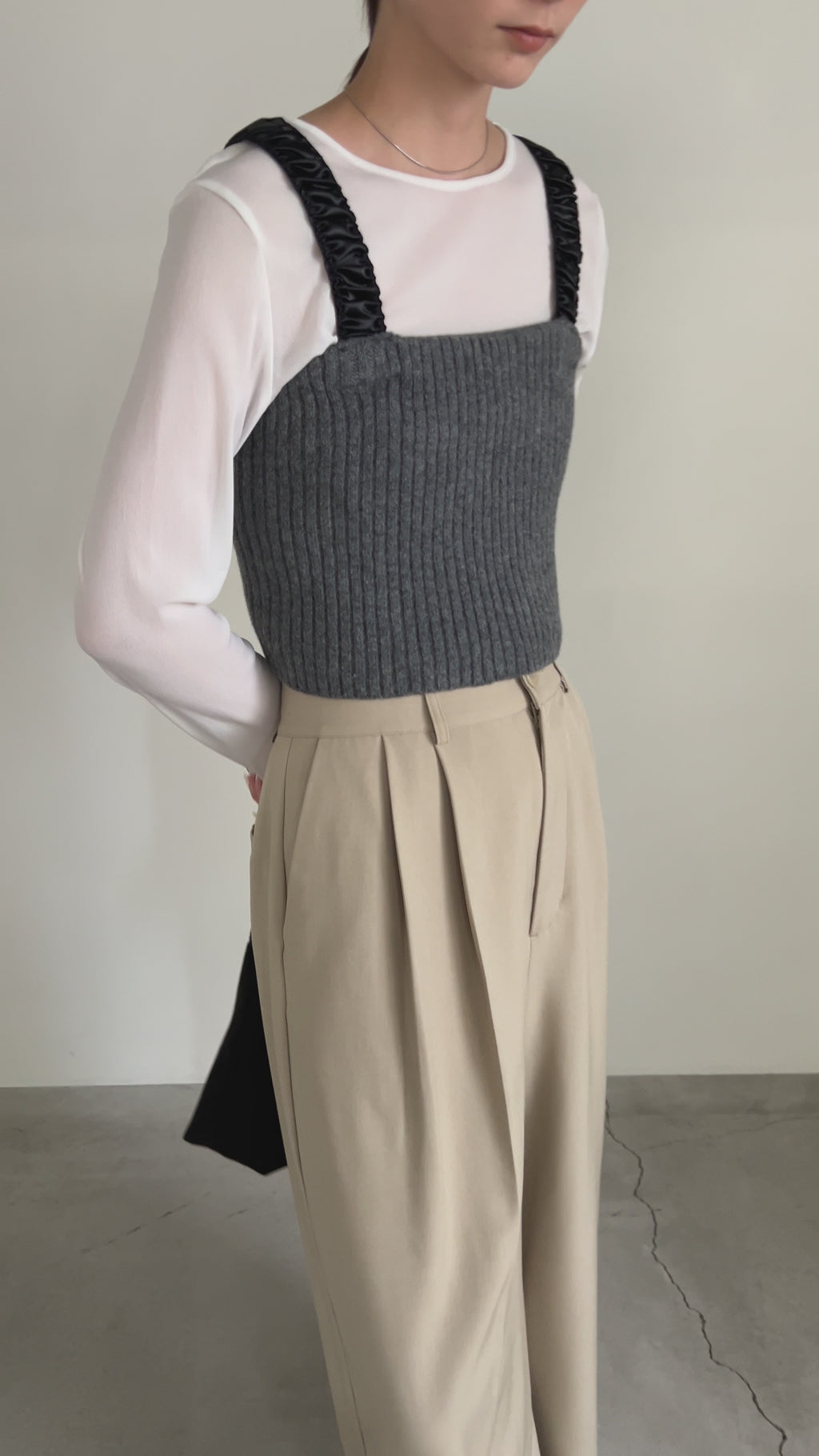 ニット×サテンの異素材合わせがシンプルながらも目を惹くビスチェ。